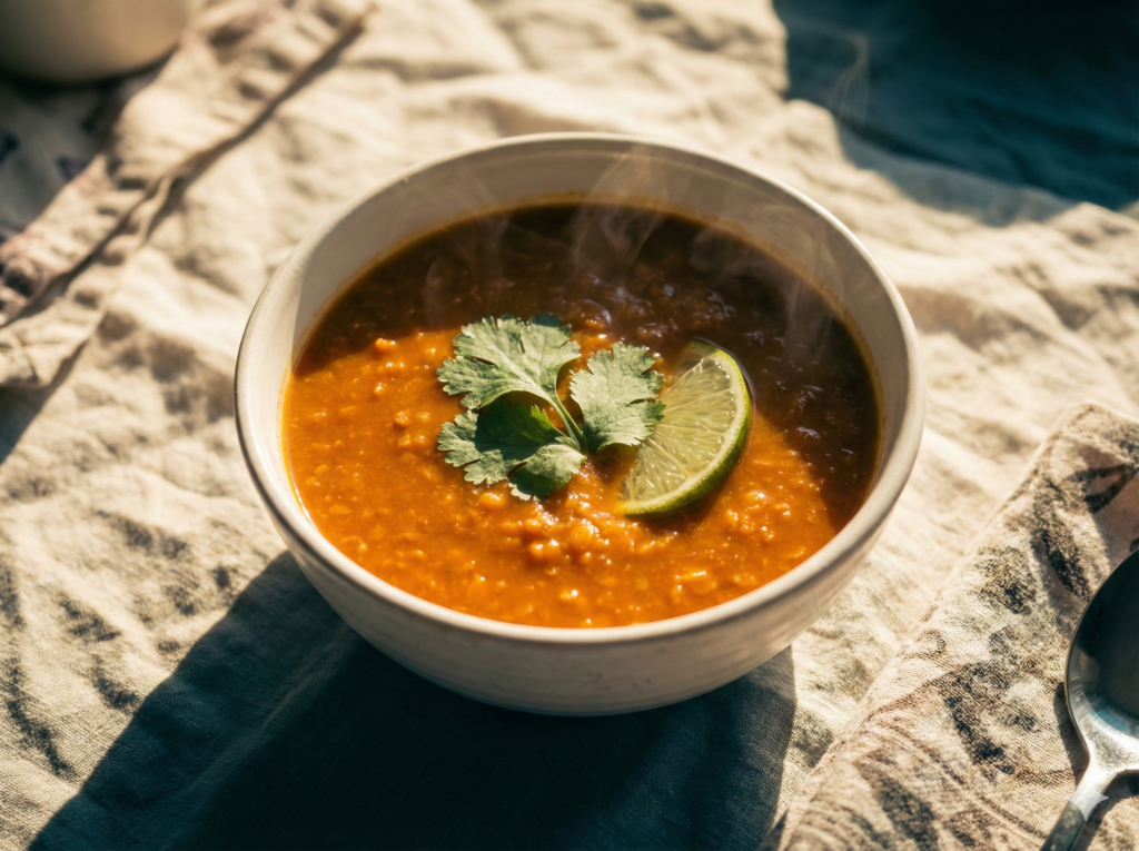 7. Februar 2026 Rote Linsen Suppe Eine würzige, cremige Suppe mit roten Linsen, Kokosmilch und Curry – perfekt für kalte Tage.